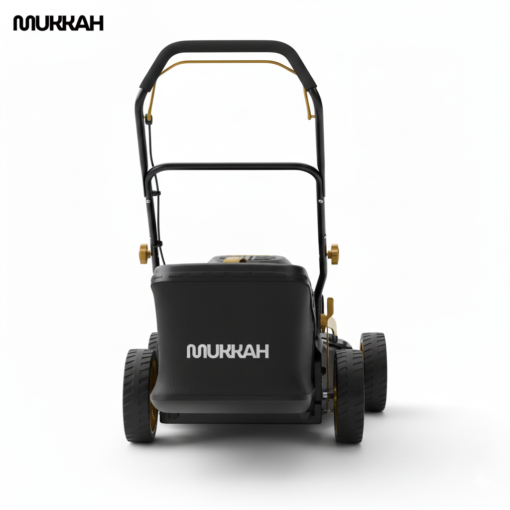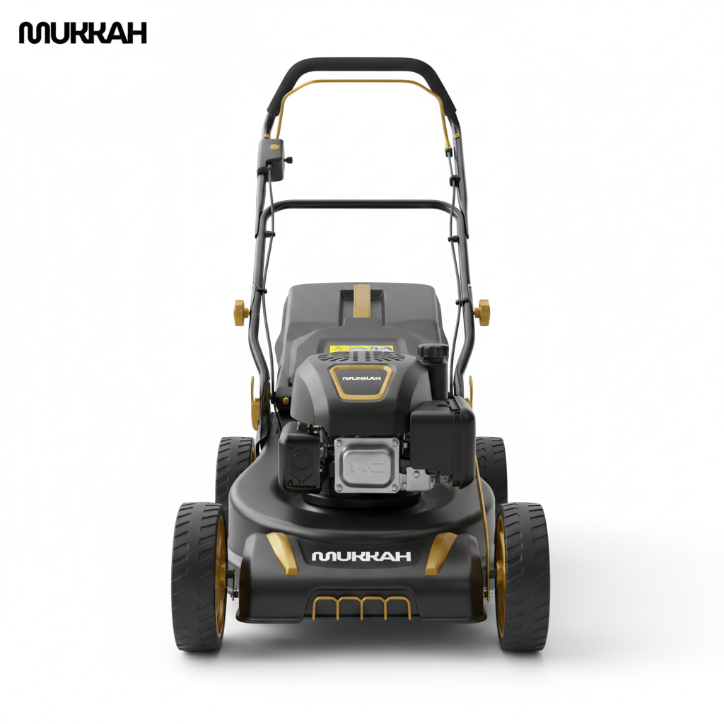 The Mukkah 21-inch 170cc Gas Lawn Mower is a premium, high-performance walk-behind mower designed for medium to large residential yards. It combines a powerful 4-stroke engine with a versatile 3-in-1 grass management system, allowing users to mulch, bag, or discharge clippings. Its distinctive matte black and gold aesthetic reflects its durable build and professional-grade capabilities.